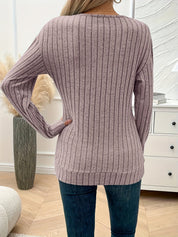 The Vera long-sleeved V-neck T-shirt offers a timeless and elegant look, perfect for any occasion. This solid-color T-shirt is a versatile addition to your wardrobe, suitable for both casual and more formal outfits.